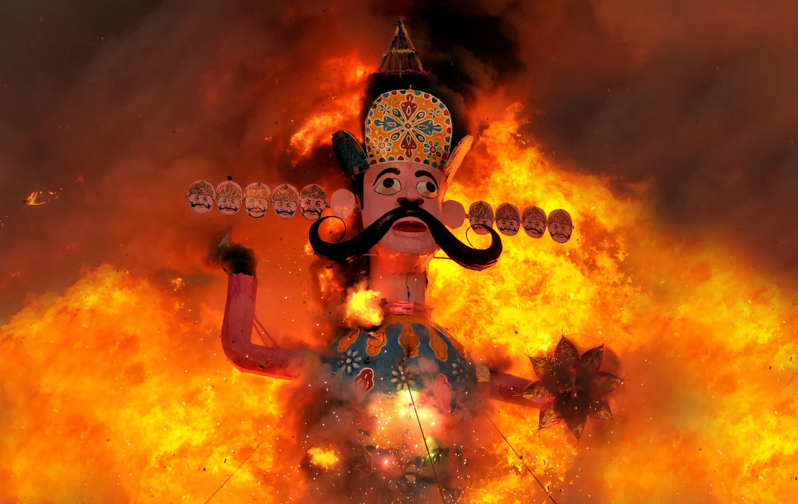 ’रावण की नौ सिर और दस भुजाओं वाली प्रतिमा’