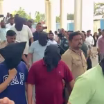 पश्चिम बंगाल के मुर्शिदाबाद में शुक्रवार को वक्फ एक्ट के खिलाफ प्रदर्शन ने उग्र रूप ले लिया. निमतिता स्टेशन पर खड़ी ट्रेन पर भीड़ ने पत्थरबाज़ी की और स्टेशन की संपत्ति को जमकर नुकसान पहुंचाया. इस बवाल में सात से दस पुलिसकर्मी घायल हुए हैं, जबकि कुछ यात्रियों को भी चोटें आई हैं. हालात बेकाबू होते देख बॉर्डर सिक्योरिटी फोर्स (BSF) को तैनात करना पड़ा है. हिंसा की वजह से कम से कम दो ट्रेनों को रद्द कर दिया गया है और पांच ट्रेनों को दूसरी दिशा में मोड़ना पड़ा। भीड़ की हिंसा से यात्रियों में भी अफरातफरी मच गई.