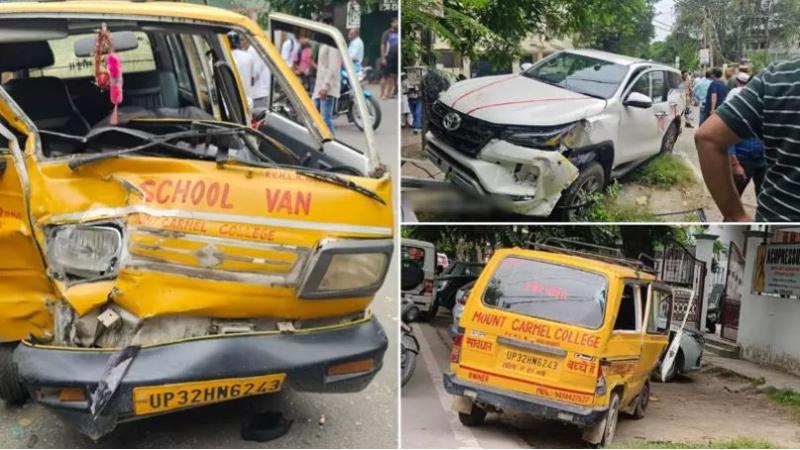 उधर स्कूली वैन और फॉर्च्यूनर कार को भी नुकसान पहुंचा है। महानगर एसएचओ ने बताया कि हादसे के बाद फॉर्च्यूनर कार सवार को पकड़ लिया गया है। उससे पूछताछ की जा रही है। 2-4 बच्चों को खरोंच वगैरह आ गई थी तो उन्हें डॉक्टर को दिखा दिया गया है। दोनों गाड़ियां आमने-सामने आ गई थी। यह सभी बच्चे माउंट कार्मेल कॉलेज के थे। फिलहाल इस मामले की जांच की जा रही है। स्कूली वैन का अगला हिस्सा बुरी तरह से पिचक गया है। आगे का शीशा भी टूट गया है। जबकि नई फॉर्च्यूनर गाड़ी में भी आगे और पीछे साइड में नुकसान हुआ है।