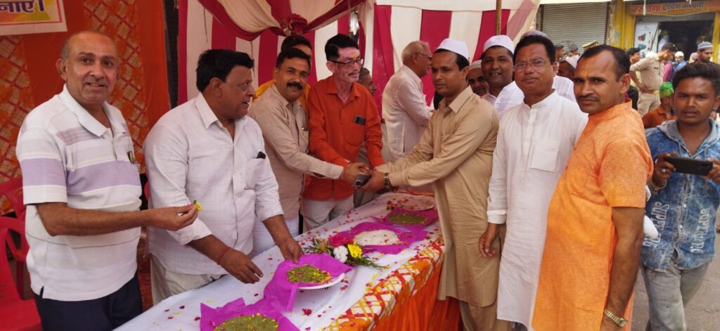 मेरठ/फलावदा। माहे रमजान को अलविदा कहते हुए मंगलवार को स्थानीय बातनौर मार्ग जूड स्थित ईदगाह की नमाज सुबह 7:45 बजे शहर काजी ने पढ़ाई। कहीं भी सड़कों पर नमाज नहीं हुई, इसके लिए पुलिस की कड़ी सुरक्षा व्यवस्था रही ईद के मौके पर नमाज होने के बाद स्थानीय कस्बे के मेन बाजार स्थित भाजपा कार्यकर्ताओं व संयुक्त व्यापारी एसोसिएशन एवं विधायक अतुल प्रधान की पत्नी पूर्व जिला पंचायत अध्यक्ष सीमा प्रधान और नगर पंचायत के द्वारा ईद मिलन कैंप समारोह में सभी नमाजियों पर फूल बरसाकर स्वागत करते हुए गले मिलकर एक दूसरे को मिठाई खिलाकर ईद की बधाई दी। इस दौरान व्यापारी एसोसिएशन के जिला उपाध्यक्ष अश्वनी विश्नोई, जिला महामंत्री कृष्ण गोपाल उर्फ पप्पू, मास्टर अरुण विश्नोई, भाजपा नेता नरेंद्र खटीक, मास्टर टीकम गुर्जर, अशोक भारती, तनजैब चौधरी, भास्कर अग्रवाल, आशीष बिश्नोई, विपिन रस्तोगी, अजय शर्मा, तरुण रस्तोगी, भाजपा नेता अशोक सैनी, विनीत रस्तोगी, सपा नगर अध्यक्ष विनोद सैनी, मोहित तोमर, नितिन कटारिया, दयाचंद सभासद व्यापार मंडल के नगर अध्यक्ष आशु पालीवाल, आरव राजपूत आदि ने कस्बे के पूर्व चेयरमैन मेराजुद्दीन, कांग्रेस के वरिष्ठ नेता सैयद रिहान उद्दीन, चेयरमैन अब्दुस समद, पूर्व चेयरमैन मिर्जा शफीकउद्दीन, मास्टर फैयाज,पूर्व चेयरमैन नैयर आलम कुरेशी, उस्मान अंसारी आदि कस्बे के मुस्लिम नेताओं को ईद की बधाई व शुभकामनाएं दी हैं