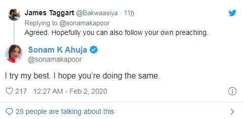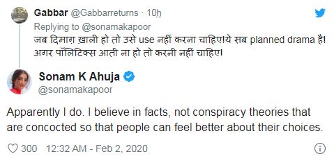 — Sonam K Ahuja (@sonamakapoor) February 1, 2020