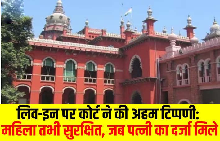 चेन्नई । मद्रास हाईकोर्ट की मदुरै बेंच ने लिव-इन रिलेशनशिप को लेकर एक महत्वपूर्ण टिप्पणी करते हुए कहा, कि ऐसे रिश्तों में रहने वाली महिलाओं को वास्तविक सुरक्षा तभी मिल सकती है, जब उन्हें पत्नी के समान दर्जा दिया जाए। कोर्ट ने माना कि मौजूदा कानूनी ढांचे में लिव-इन रिलेशनशिप में महिलाओं को वैवाहिक सुरक्षा प्राप्त नहीं है, ऐसे में अदालत की जिम्मेदारी बनती है कि वह महिलाओं को संरक्षण प्रदान करे।