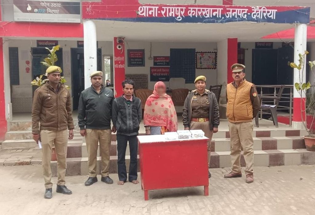 थाना रामपुर कारखाना पर पंजीकृत मुकदमा से संबंधित अभियुक्त राकेश पुत्र स्व0 बिल्लू प्रसाद निवासी वार्ड नं0 01 थाना रामपुर कारखाना जनपद देवरिया, प्रकाश में आयी अभियुक्ता लीलावती पत्नी उमेश निवासी वार्ड नं0 01 थाना रामपुर कारखाना जनपद देवरिया तथा 01 बाल अपचारी को मुखबिर की सूचना पर डूमरी तिराहे के पास से गिरफ्तार किया गया।
