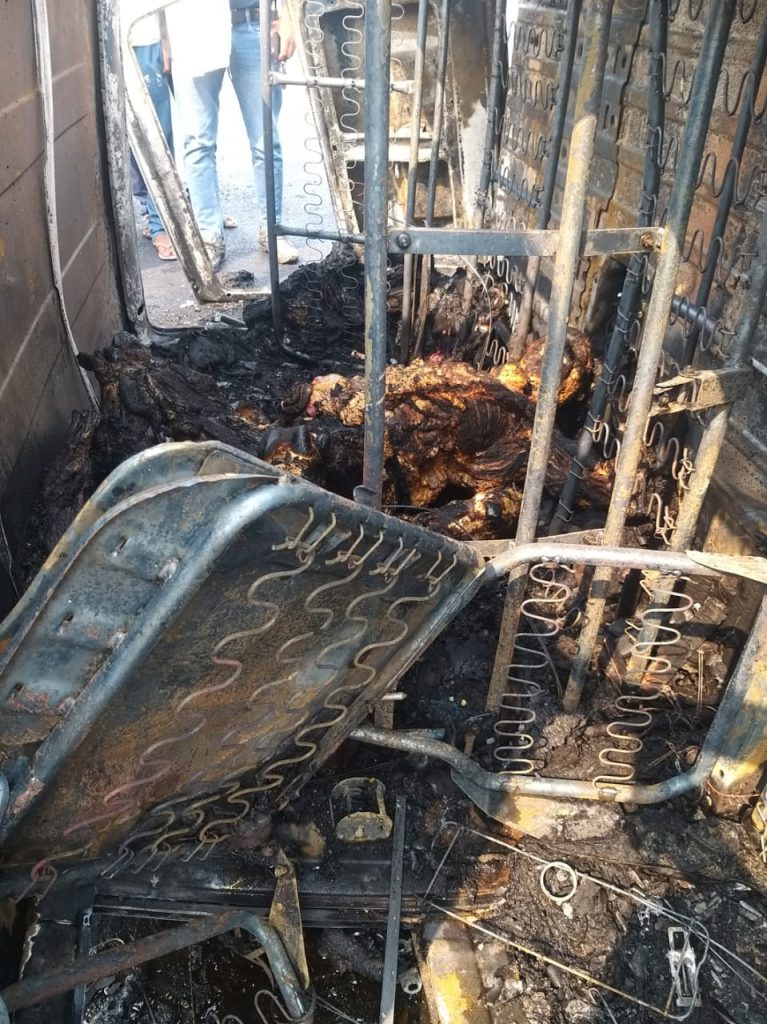 गाजियाबाद। दिल्ली मेरठ एक्सप्रेस वे फिर एक बार मौत का बना गवाह। दिल्ली मेरठ एक्सप्रेस वे पर आए दिन हादसे होने के बाद रुकने का नाम नही ले रहे। ताजे मामले में एक दर्दनाक हादसा सामने आया है। चश्मदीदों के अनुसार बताया जा रहा है कि एक मारुति ओमनी वेन मेरठ से गाजियाबाद की तरह आ रही थी कि तेज़ रफ़्तार होने के चलते गाड़ी पलट गई। गाड़ी के पलटने से उसमें करीब महिला सहित पांच सवारी भरी थी। गाड़ी पलटते ही गाड़ी में आग लग गई ल। आग लगने से अफरा तफरी मच गई गाड़ी में आगे बैठे महिला और पुरूष आग की चपेट में आ गए। इसी बीच पीछे बैठी सवारियो को राहगीरों ने बमुश्किल हालत में गाड़ी से बाहर निकाला। आगे बैठी सवारियों के आग में झुलसने से मौत हो गई। पुलिस के मुताबिक अन्य झुलसे हुए लोगो को नजदीकी हॉस्पिटल में भर्ती कराया गया है। मृतकों की पहचान कराई जा रही है। और पता लगाया जा रहा है कि गाड़ी कहां से कहां जा रही थी।