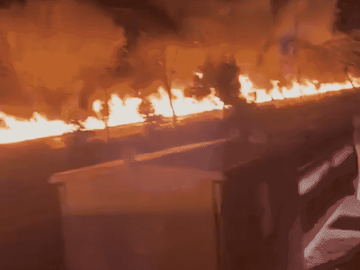 सोशल मीडिया प्लेटफॉर्म एक्स पर “लिविंग इन तेहरान” नाम के एक अकाउंट द्वारा साझा किए गए वीडियो में सड़क के किनारे लंबे हिस्से में आग जलती हुई दिखाई दे रही है।