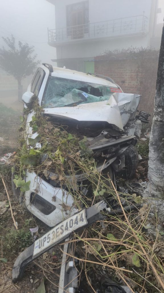 ड्राइवर को झपकी आने से हुआ हादसा, स्कार्पियो के उड़े परखच्चे