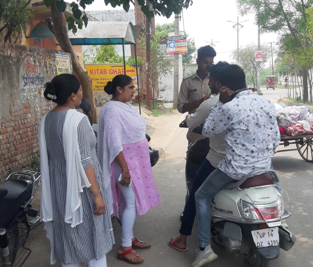 गाजियाबाद। प्रदेश के मुख्यमंत्री योगी आदित्यनाथ की पहल पर महिलाओं और युवतियों की सुरक्षा को ध्यान में रखते हुए जनपद में एंटी रोमियो स्क्वायड टीम अब अपना काम करती हुई दिखाई दे रही है। जिसके चलते भीड़ भाड़ वाली जगह स्कूल कॉलेजों के बाहर एंटी रोमियो टीम चेकिंग अभियान में जुटी हुई दिखाई दी। जानकारी के अनुसार बता दें कि मसूरी थाने में तैनात महिला कॉन्स्टेबल अनुज पवार, महिला कांस्टेबल भावना और कॉन्स्टेबल प्रशांत कुमार द्वारा आजाद मेमोरियल इंटर कॉलेज, आध्यात्मिक कॉलेज के सामने आवारा और स्कूल के आस-पास खड़े छात्रों की चेकिंग की जा रही है। बिना वजह खड़े लोगों के नाम पते भी लिखे जा रहे है। जिससे कि उच्च अधिकारियों के निर्देशन में एंटी रोमियो स्क्वाड टीम अपना काम बखूबी करते हुए दिखाई दी। एसएचओ योगेंद्र सिंह ने जानकारी देते हुए बताया कि शासन के आदेश पर कप्तान साहब के निर्देशन में भीड़ भाड़ वाली जगह स्कूल कॉलेजों के आसपास सिविल वर्दी में महिला कॉन्स्टेबल बिना वजह ऐसे लोगों से पूछताछ कर चेतावनी दी एवं दोबारा खड़े दिखाई देने पर कार्रवाई की चेतावनी दी