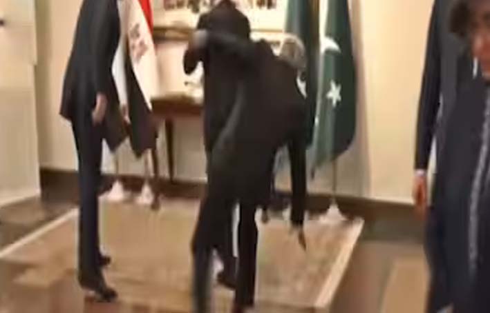 ‘शांति दूत’ बनने की कोशिश में लड़खड़ाए पाकिस्तान के उपप्रधानमंत्री: विदेशी मेहमानों के सामने फिसला पैर, फर्श पर गिरे इशाक डार