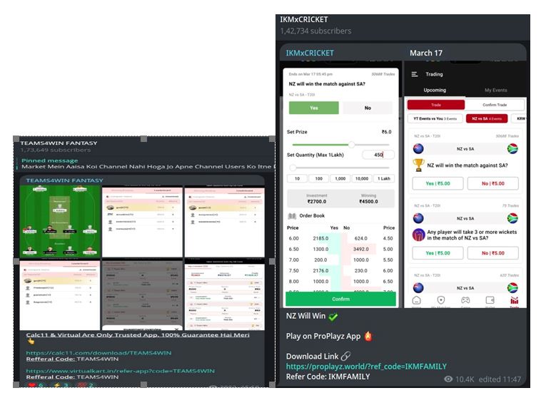 ये ऑपरेटर बिना किसी निगरानी के, अक्सर मिडिल ईस्ट के जरिए, काम करते हैं और यूजर्स को वित्तीय धोखाधड़ी और डेटा चोरी के जोखिम में डालते हैं। कुछ नाम जैसे — Fantasy Cricket Guru, Teams4win, Cric11Forecast आदि — ऐसे नेटवर्क चला रहे हैं।