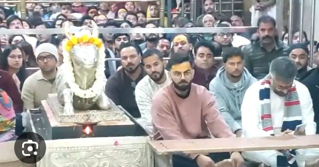 भस्म आरती के दौरान विराट कोहली पूरी तरह भक्ति में लीन नजर आए। उन्होंने जमीन पर बैठकर ध्यान लगाया और माथे पर चंदन लगाकर “जय महाकाल” का उद्घोष किया। इस दौरान मंदिर परिसर में मौजूद श्रद्धालुओं में भी खासा उत्साह देखने को मिला।